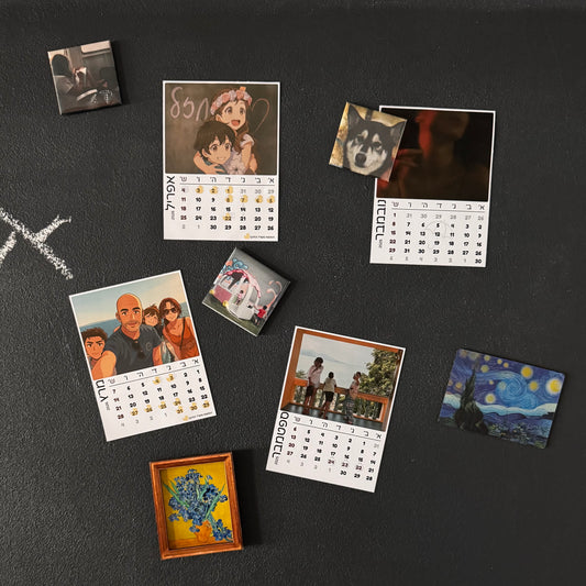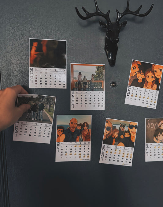 מחפשים מתנה אישית או דרך מקורית לארגן את השנה? הכירו את לוח השנה מגנט שלנו – פתרון פרקטי ויפהפה שנשאר מול העיניים כל יום מחדש. רוצים עזרה בעריה (סגנון אנימה או אחר) ? עלינו ללא תוספת תשלום. נשלח לכם לאישור לפני ההדפסה